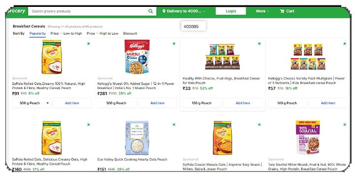 - Out-of-Stock Alerts: Some items can show as temporarily unavailable, and these alerts vary by pincode, offering a glimpse into hyperlocal consumption patterns.
